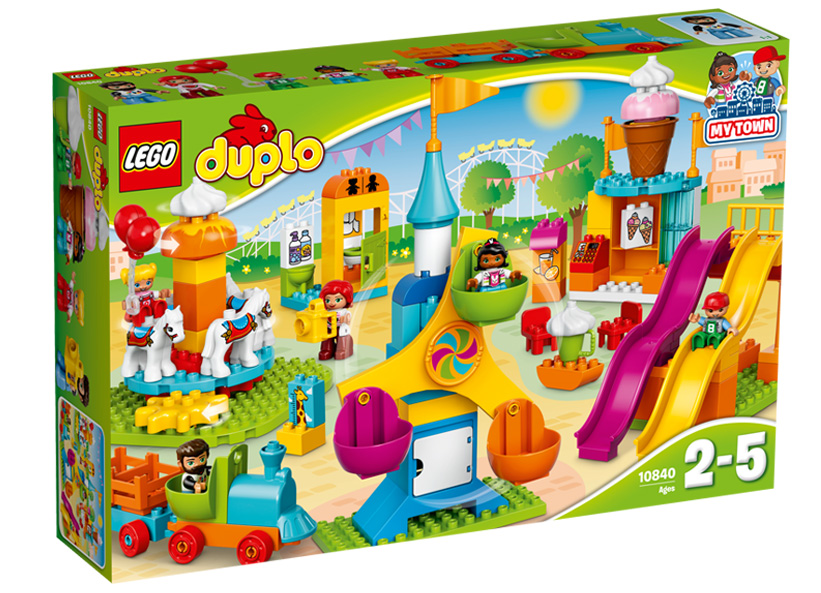 Interpreteaza scene distractive de weekend in familie cu figurine moderne LEGO DUPLO, la Marele parc de distractii colorat si stralucitor. Copilasii vor adora sa construiasca Roata Ferris si sa o invarta pentru a privi forfota masinilor, sa roteasca caruselul cu functie de roata dintata si cei patru cai de calarit, si sa se joace iar si iar pe toboganele mari si valurite. Ei mai pot sa conduca micul tren si sa viziteze chioscul de inghetata, pot desprinde inghetata gigantica, dand-o mamicii sau taticului! Include cinci figurine DUPLO.