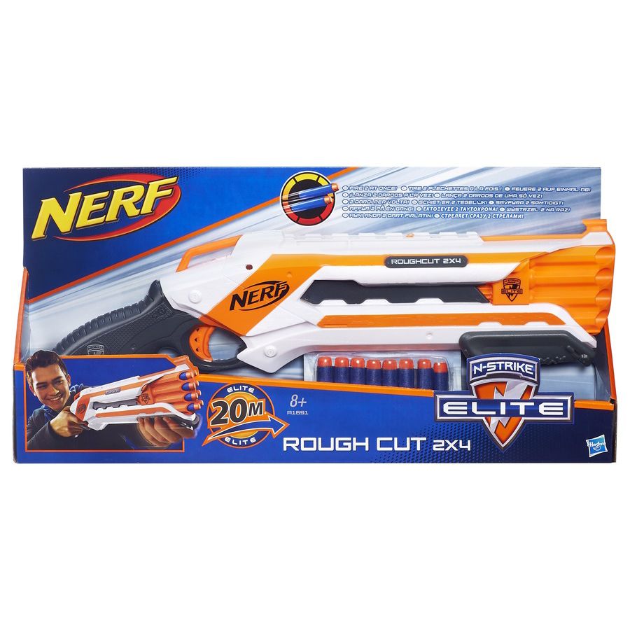 Intra in lupta si surprinde-ti adversarii cu blasterul care poate trage cu doua proiectile odata, la o distanta de pana la 23 m. Sistemul de tragere, iti da voie sa lansezi pana la 8 cartuse Elite, fara a reincarca. Dubleaza-ti puterea si domina lupta! Blasterul vine cu 8 cartuse. Ca la cele mai multe blastere N-STRIKE, sina tactica iti permite sa adaugi diferite accesorii N-STRIKE (vandute separat) pentru o performanta sporita in lupta. Dubleaza-ti puterea cu blasterul ROUGH CUT 2X4 si fii gata sa domini lupta!