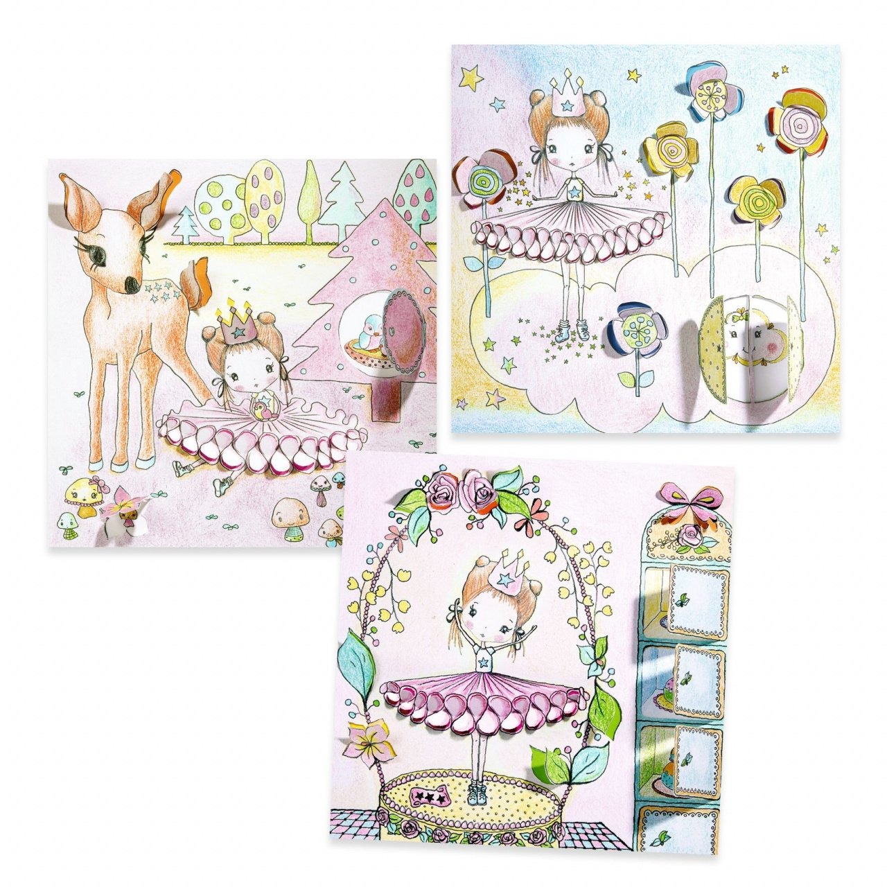 - Conține: 2 seturi de 4 cărți cu clape și decupaje 3D (20 x 20 cm)
