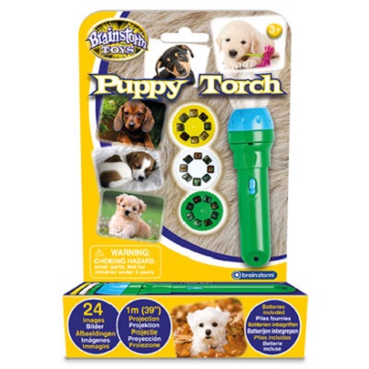 Include trei discuri cu diapozitive cu 24 de imagini magice cu cățeluși.