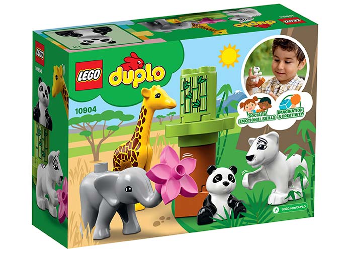 Impartaseste pretioasele repere de dezvoltare ale copilasului tau cu acest set de pui de animale LEGO DUPLO care deschide o lume a jocului imaginativ. Iata un pui simpatic de panda rontaind bambus, un pui de tigru alb rar care admira o floare roz, un pui de girafa care molfaie frunzele unui copac, si un adorabil pui de elefant care vine sa se joace cu prietenii sai. Figurinele de animale usor de manuit si caramizile de constructie dezvolta intelegerea sociala si emotionala a copilasilor, si abilitatile lor de constructie si motorii fine timpurii.