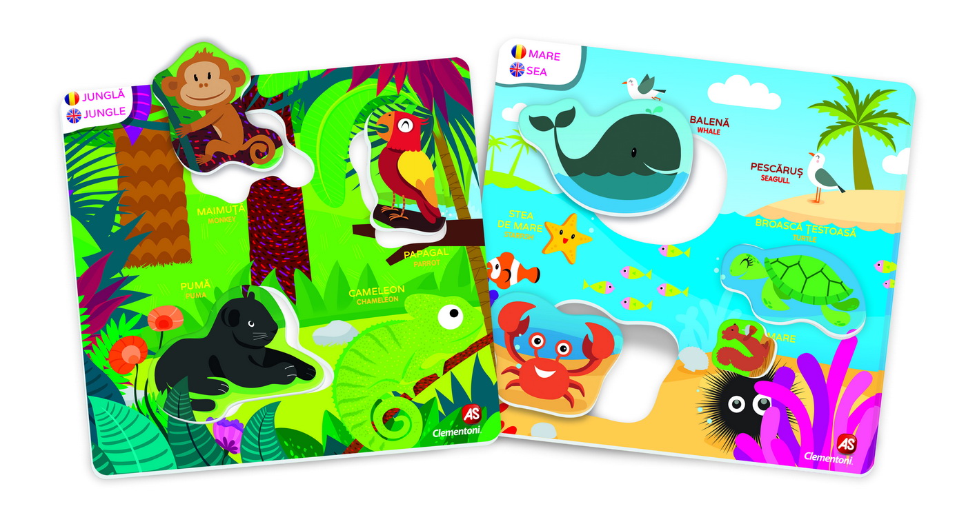 Un joc educativ distractiv pentru copiii de la 3 ani. Conține cartonașe colorate cu noțiuni în română și engleză, pentru a facilita învățarea numelor animalelor și habitatelor în 2 limbi. Prin joc, copilul învață cărui mediu de viață aparține fiecare animal și caracteristicile habitatelor Pădure, Savană, Polul Nord și Fermă. Arătați copilului una câte una planșele cu habitate și atrageți-i atenția la modul în care plantele, culorile și elementele diferă și aparțin unui habitat specific.