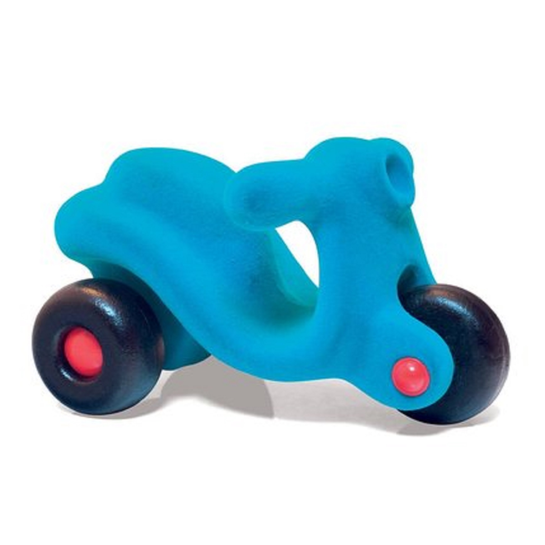 Acest scooter din cauciuc este perfect pentru bebelușii care abia descoperă jucăriile și frumusețea de-a se juca.