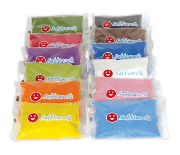 Nisipul Sabbiarelli provine din marmură albă de Carrara, motiv pentru care este atât de strălucitor! Este colorat cu vopsele pe bază de apă, non-toxice și ecologice.