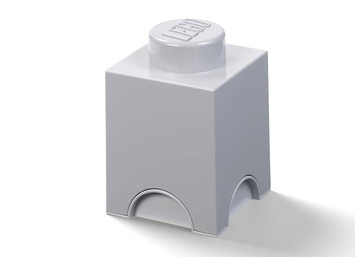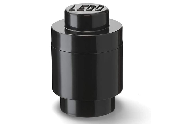 Set compus din 3 cutii de depozitare LEGO: 1 cutie rotunda 1x1 neagra, 1 cutie 1x1 gri, 1 cutie 1x2 alb.