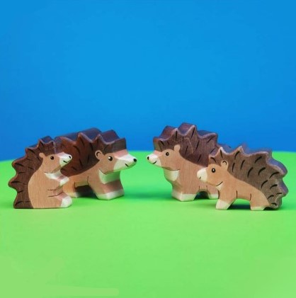 Set de 4 figurine din lemn: familia de arici.