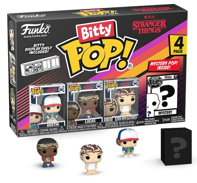 Setul include 4 personaje din serialul Stranger Things: Dustin, Lucas, Eleven cu electrozi + o figurină surpriză.