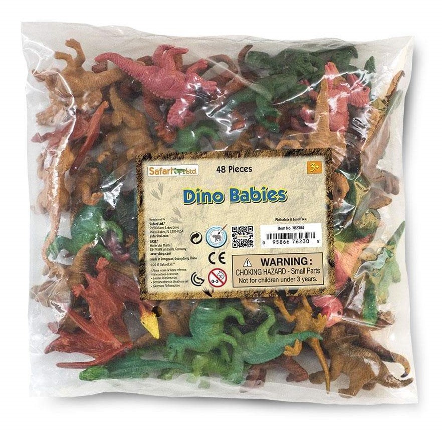 Set ce conține 48 de figurine pui de dinozauri: Pteranodon, Allosaurus, Apatosaurs, Triceratops, Brachiosaurus, Stegosaurus, Parasaurolophus, Tyrannosaurus, Velociraptor și Spinosaurus. Dimensiunea figurinelor variază între 3.2 - 9.5 cm.