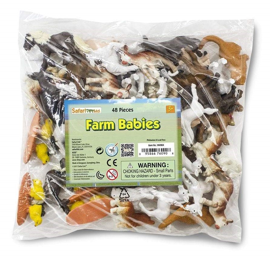 Set ce conține 48 de figurine în 12 variante: pisoi, cățeluși corgi, viței Hereford, măgăruși, miei, iezi, iepurași, viței Holstein, purcei, ponei și pui. Dimensiunea figurinelor variază între 3.2 - 9.5 cm.