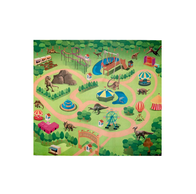 Plansa de activitati - acest covor ne arată un interesant parc de dinozauri, suficient de mare pentru 2 pană la 4 jucători să petreacă timpul de calitate impreună. Dimensiune- 70 cm x 80 cm