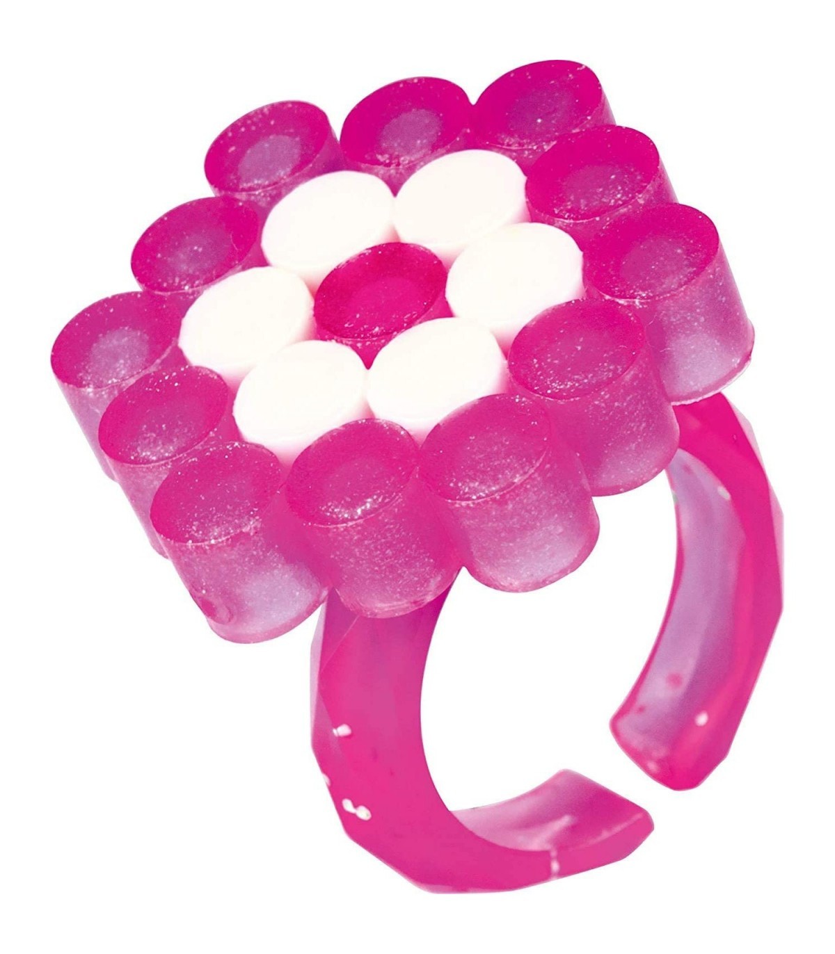 Set creativ cu mărgele ușor de asamblat pentru a realiza inele gata de purtat. Vârsta recomandată este de minim 4 ani.