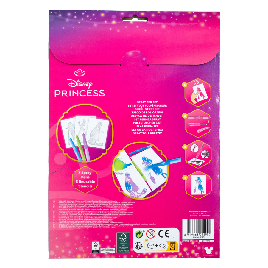Set spray markere de suflat, cu 3 markere și 3 șabloane cu prințese Disney.