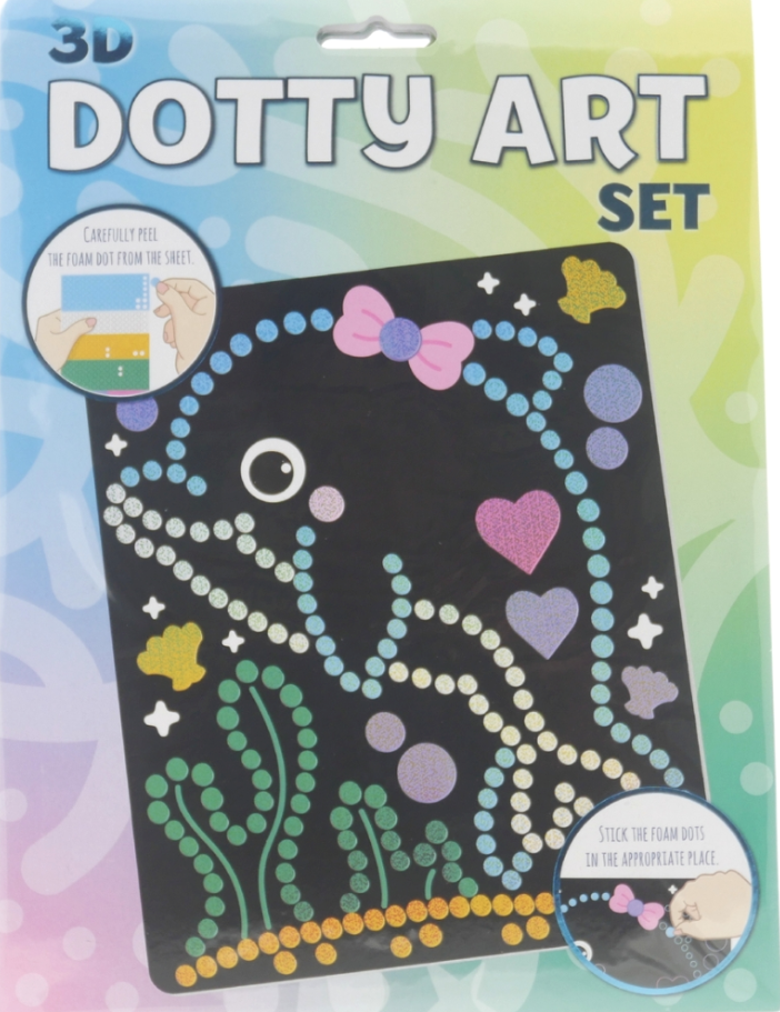 20 x 25.5, 1 planșă din carton cu desene contur (18 x 22 cm) și 1 planșă cu buline autoadezive