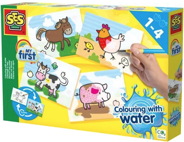 Magie cu apa fara mizerie! Vopseste cele 4 cartonase cu o pensula umeda si vezi cum ilustratiile cu animalele de la ferma prind viata.