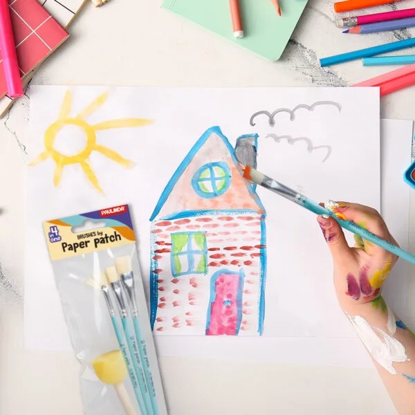 Setul de pensule și burete poate fi utilizat pentru lipirea elementelor și pieselor din colecția Paper Patch de la Strigo.