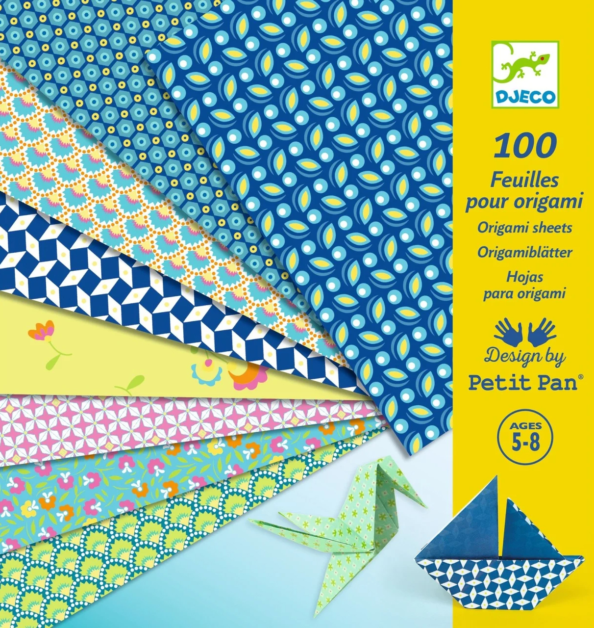 Foi cu model pentru origami Coli cu diverse modele grafice și 3 modele de origami cu instrucțiuni pas cu pas. Format pătrat clasic,compatibil cu celelalte produse origami Djeco și nu numai. Modele diferite imprimate pe fiecare parte. Două culori fluorescente. Conținut: 100 de coli (20 x 20 cm) cu 10 modele diferite. Colorate pe spate. Vârsta recomandată: 5 - 8 ani. Confecționat din hârtie și carton certificate FSC®. AVERTISMENT: Contraindicat copiilor sub 3 ani, colile pot fi rupte în părți mici. Se recomandă supravegherea copilului de către un adult în timpul jocului. Citiți cu atenție eticheta produsului înainte de a înmâna jucăria copilului.