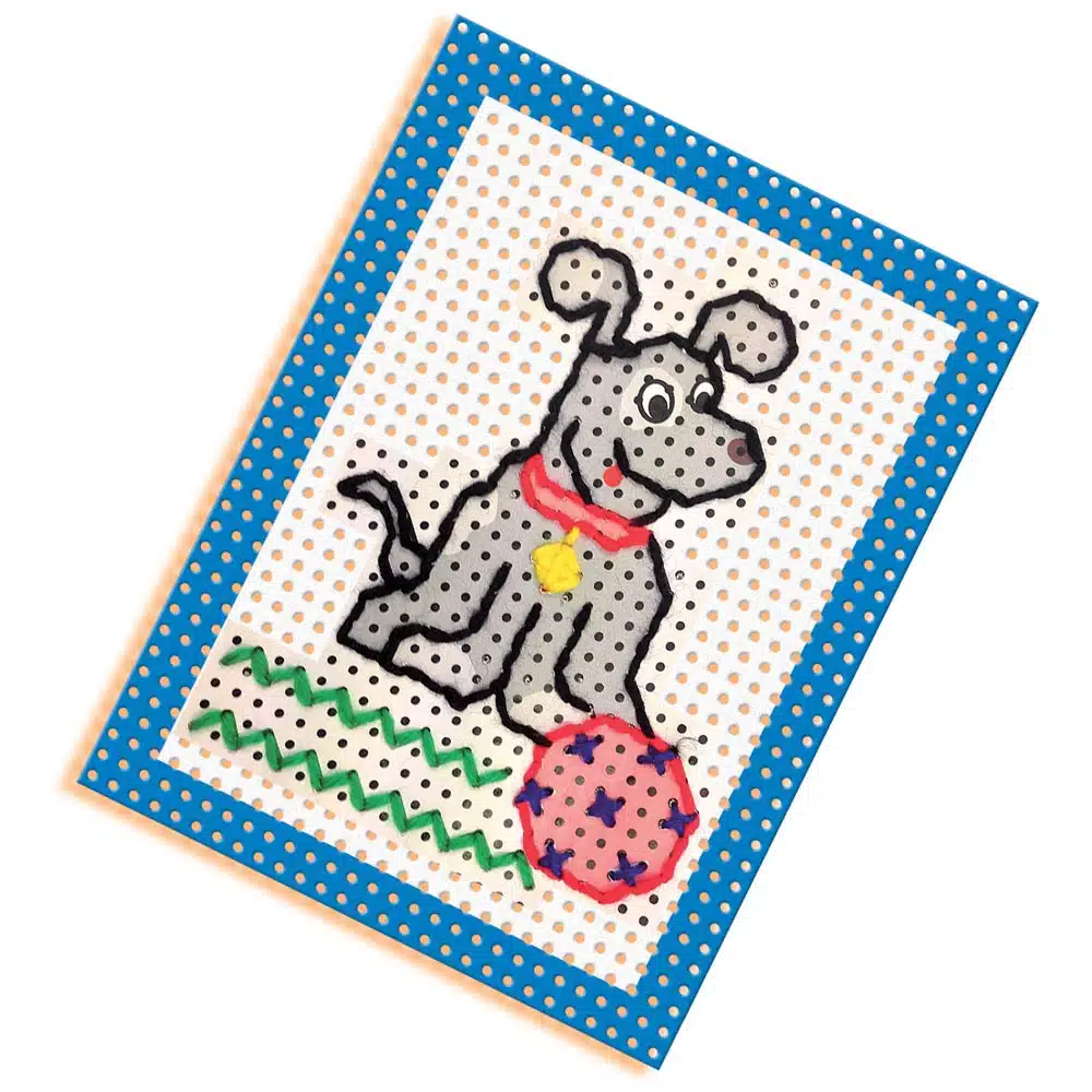 Invata sa folosesti un ac si o ata cu acest set „Invat broderie” . Puteti crea figuri distractive si colorate pe cardurile de broderie furnizate. Brodeaza o pisica, un fluture, un cal si un caine.