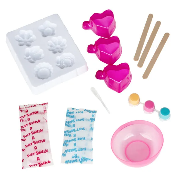 Setul include: lipici, matriță din plastic, cană de măsurare, mănuși și suport impermeabil.