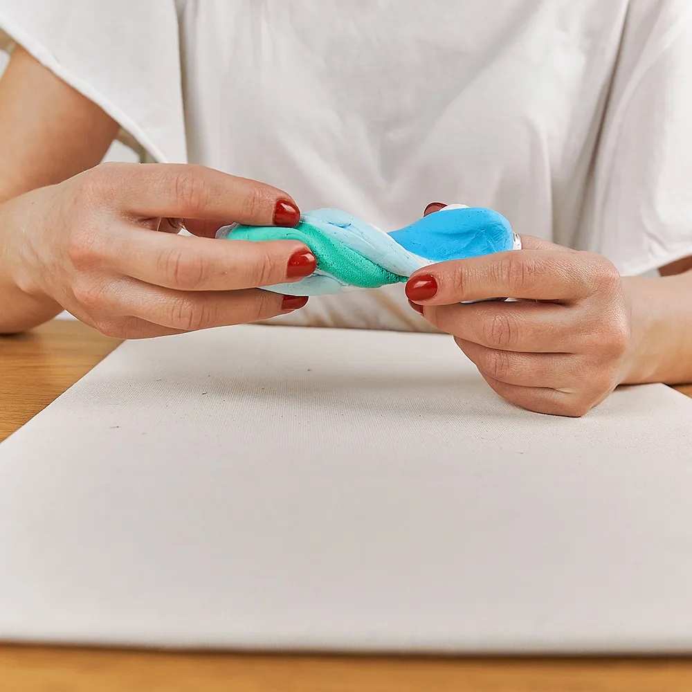 Argila este specială, nu se lipește și nu lasă urme pe mâini, este ușor de aplicat, iar prin amestecare se obțin culori armonioase.