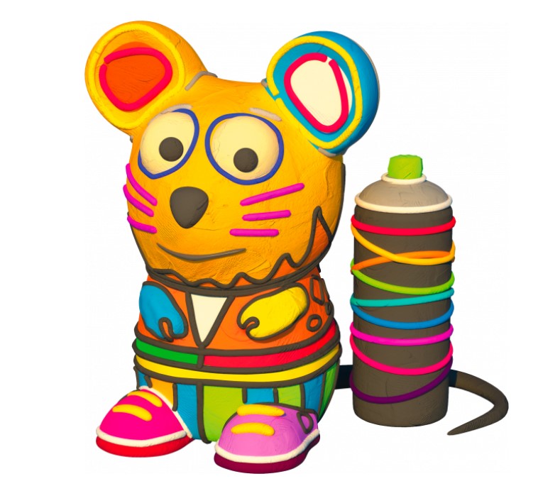 Set creativ ce conține: o formă din spumă pentru decorat, 20 pachete de argilă ușoară de diferite culori, 2 pungi cu sclipici și instrument de modelaj.