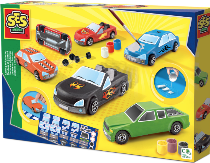 Cu acest set puteti face masini grozave din ipsos care se pot conduce. Turnati amestecul in matrita, adaugati rotile si lasati sa se usuce.