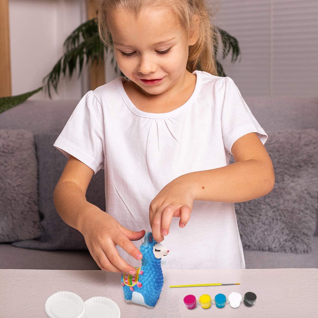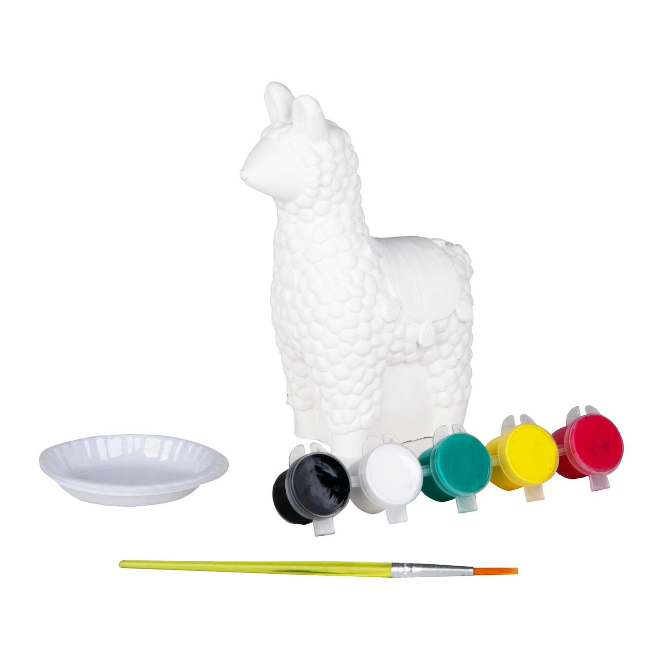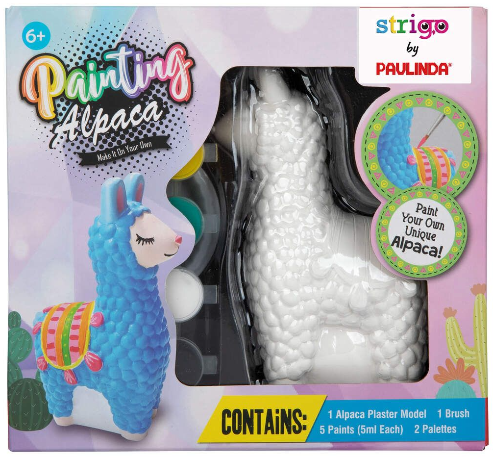 Setul include: figurina din ghips Alpaca, vopsele, pensulă și paletă.