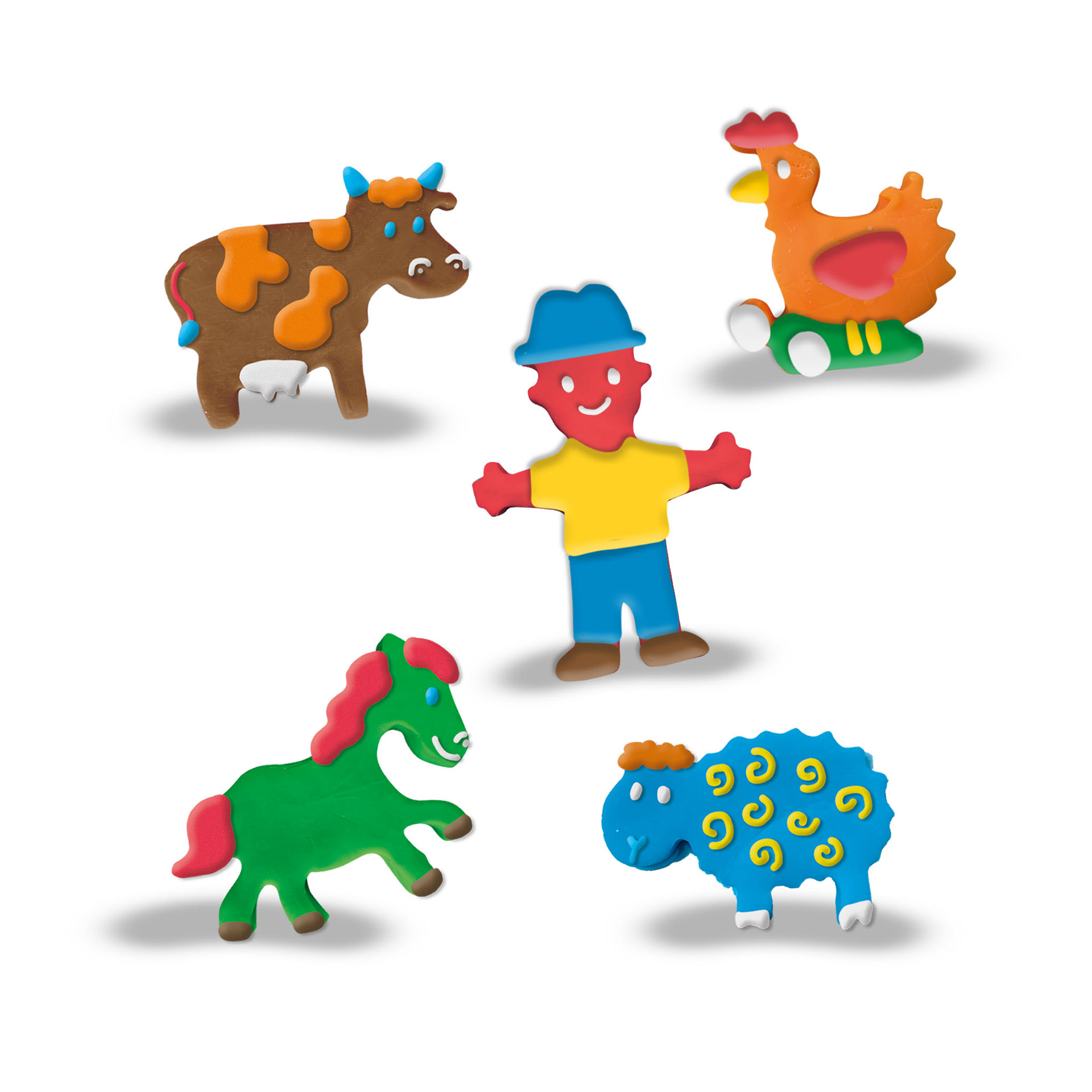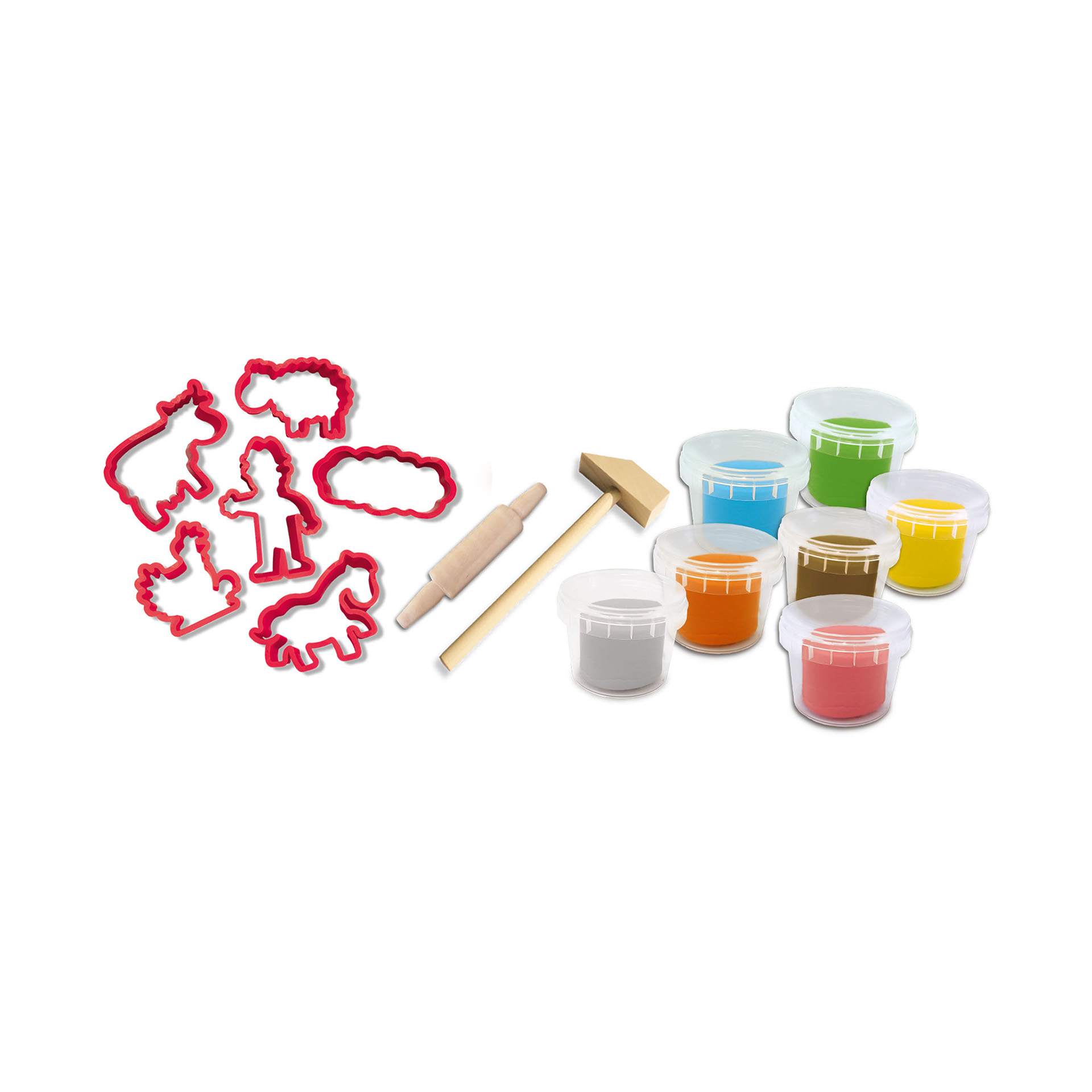 Acest mega set de plastilina este potrivit pentru copii de un 1an si peste si contine 7 culori de plastilina si diverse forme. Cu aceste forme, cu ciocanul de lemn si rola de aluat, fiecare copil poate sa-si faca cu usurinta propria ferma.