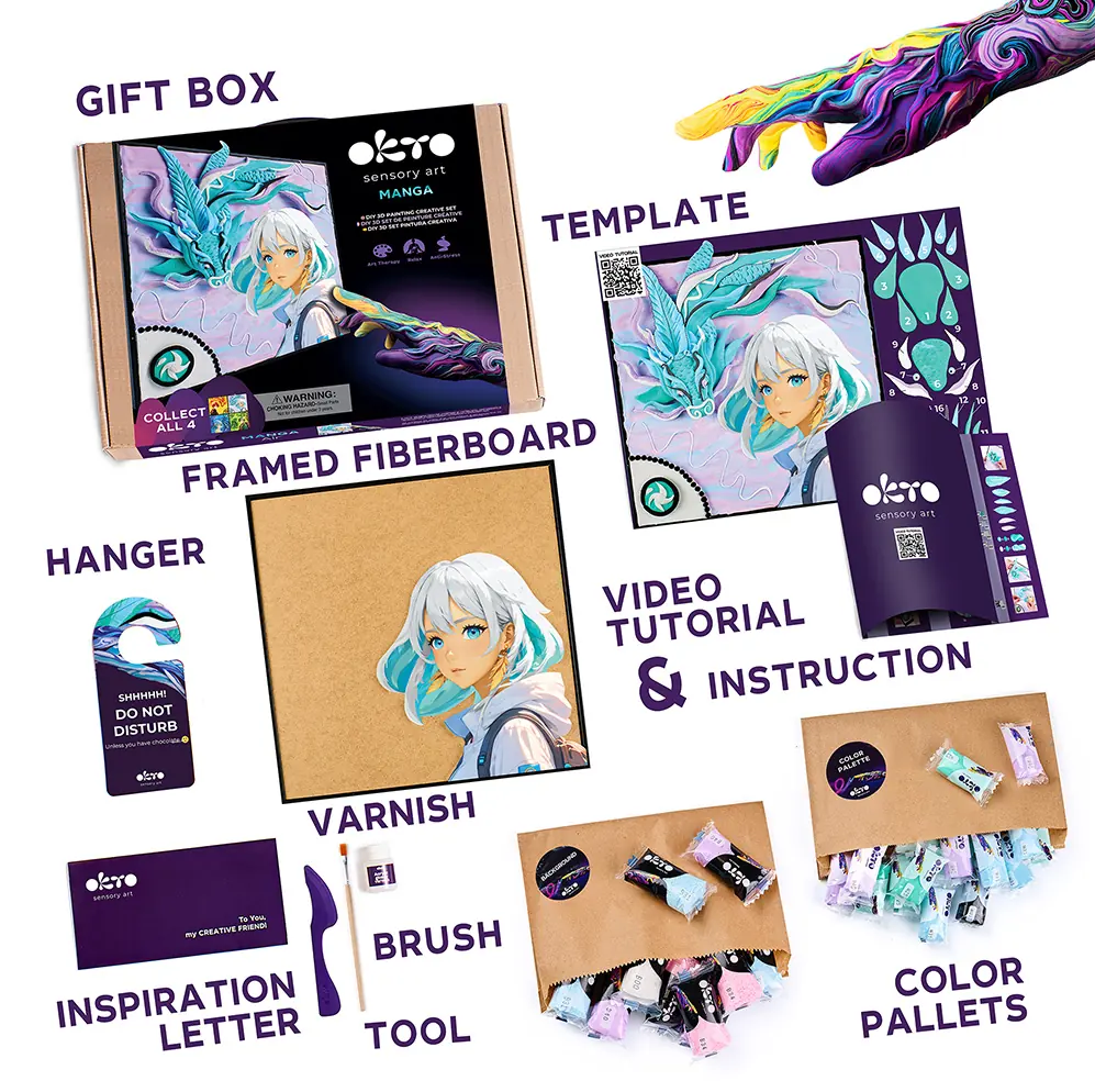 Exploreaza universul fascinant al artei 3D cu setul Manga AIR de la Okto. Acest kit creativ imbina tehnica traditionala de pictura cu argila usoara, oferind o experienta artistica senzoriala unica. Inspirat de elementul aerului, designul vibrant si detaliile fine ale personajului anime aduc la viata o scena spectaculoasa.