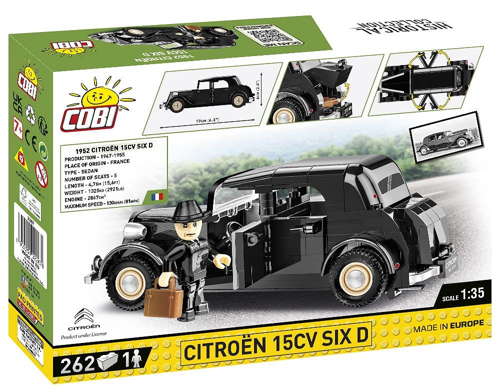 Citroen Traction 15CV SIX D a fost recreat cu atenție folosind blocuri de construcție COBI. Mașina completează o colecție mare de vehicule istorice în modele la scară 1:35.