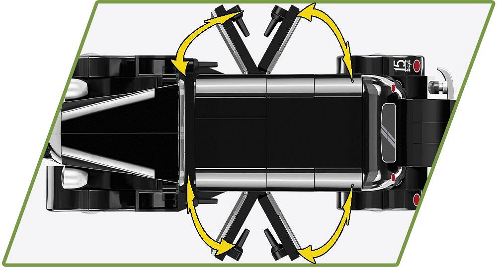 Acest model de blocuri COBI este format din 262 de elemente și are roți care se învârtesc și o ușă care se deschide. Setul conține doar imprimeuri de înaltă calitate, care nu se uzează chiar și în timpul utilizării intense. Imprimeurile conferă mașinii o dimensiune și mai istorică. Întregul lucru este completat cu o cărămidă cu numele mașinii și o figură a șoferului.