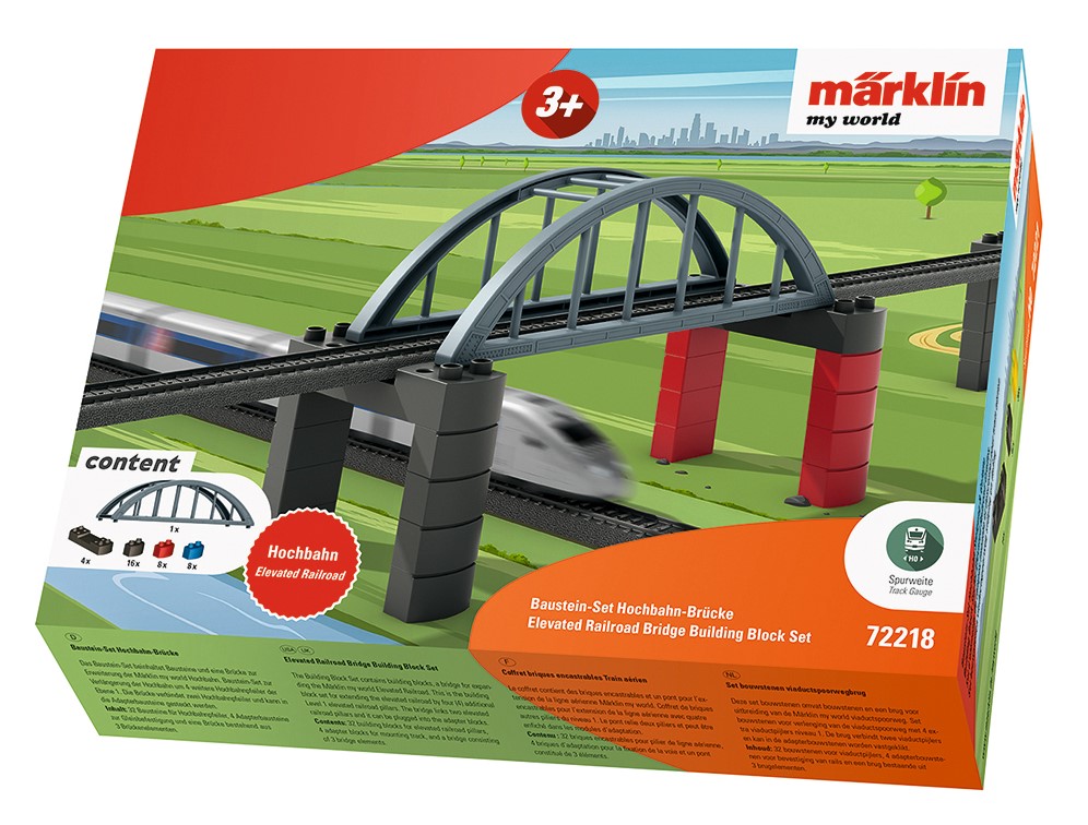 Conținut: 32 de blocuri de construcție pentru stâlpi de cale ferată înălțată, 4 blocuri adaptoare pentru montarea șinei și 3 elemente de pod.