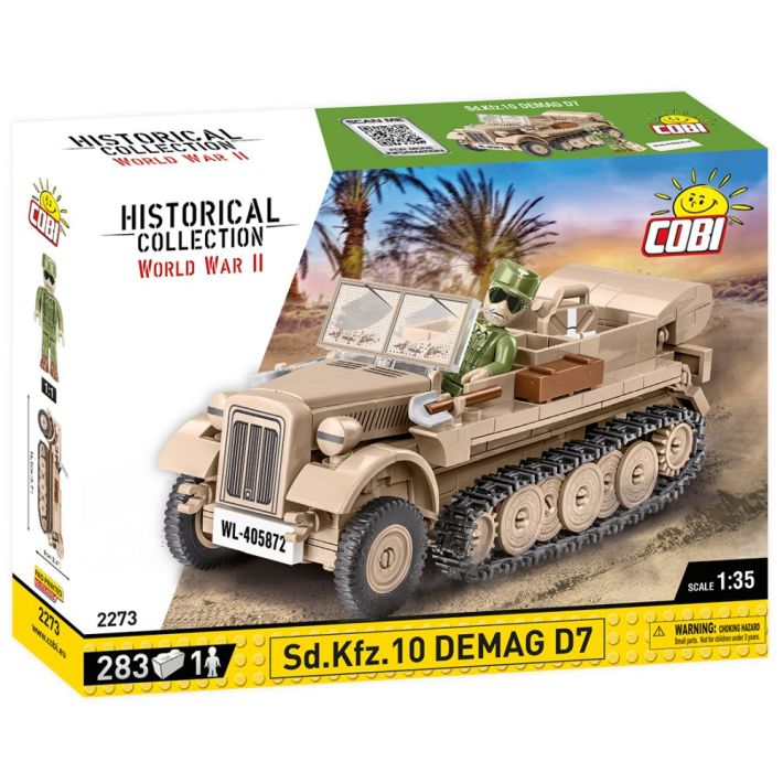 Tractorul de artilerie COBI Sd.Kfz.10 a fost proiectat cu atenție la detalii într-o machetă la scară 1:35, folosind 283 de elemente. Conține piese mobile și imprimeuri durabile și de înaltă calitate. Setul completează perfect colecția în creștere de vehicule istorice la scară 1:35. Cu siguranță își va găsi un loc în colecția ta alături de camioanele Blitz, mașinile Horch și alte vehicule uimitoare lansate în aceeași serie de COBI. Setul include o figură a unui soldat Afrika Korps. Există accesorii suplimentare pe vehicul, cum ar fi un nou tip de cutie, o pipă și o rangă.