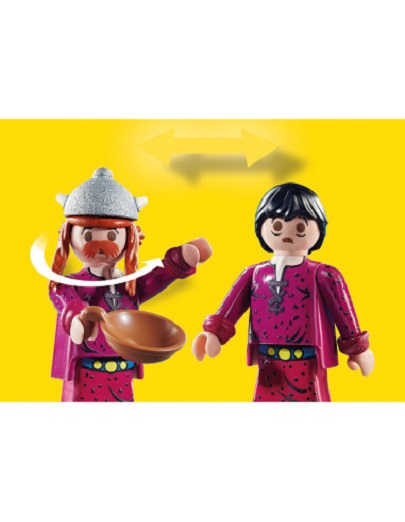 Dar ce se va intampla cand efectul va disparea si galezii il vor demasca pe spion? Setul include: druidul Getafix, galezul Geriatrix si spionul roman Caligula Minus, cu o fata si o peruca schimbabile pentru demascare, diverse ierburi, frunze si flori pentru prepararea potiunilor magice, un cazan, un copac, o piatra mare de ridicat si multe alte accesorii pentru o distractie galeza captivanta.