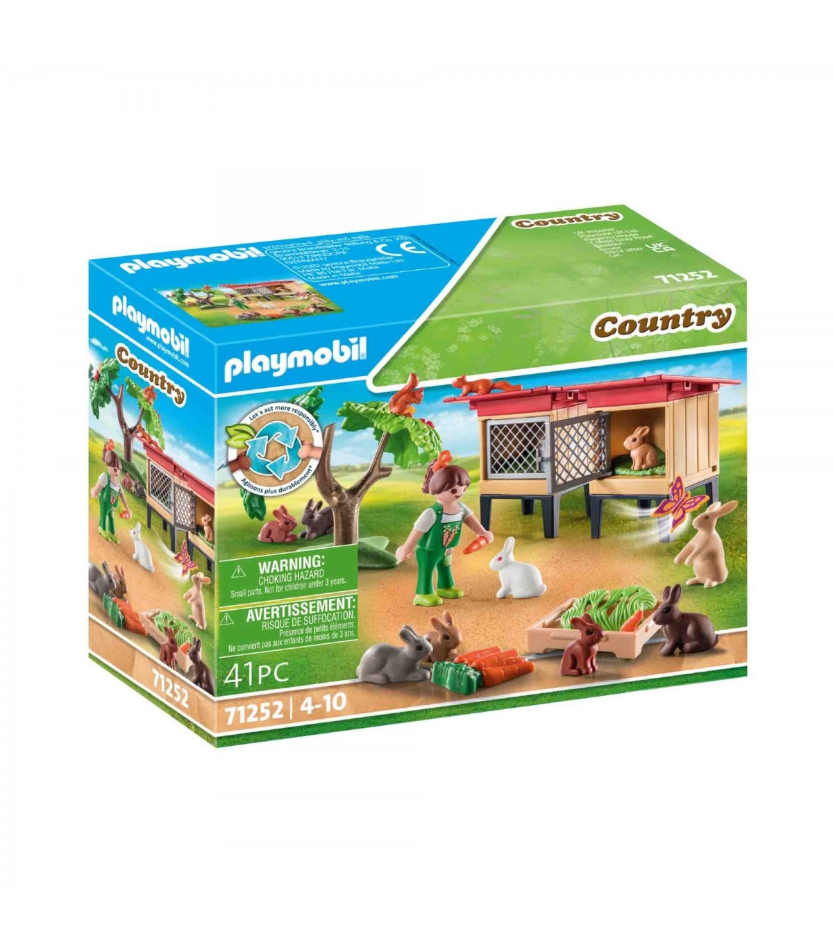 Copiii iubitori de animale vor fi incantati de acest set de joaca PLAYMOBIL. In cele doua colibe de iepuri, noua iepuri zboara si asteapta sa fie hraniti si mangaiati. Fata are morcovi si verdeata cu ea, iar iepurii se napustesc entuziasmati asupra deliciilor proaspete. 2 grajduri ofera un adapost pentru numerosi iepuri. Iepurii sunt hraniti cu furaj verde si morcovi.