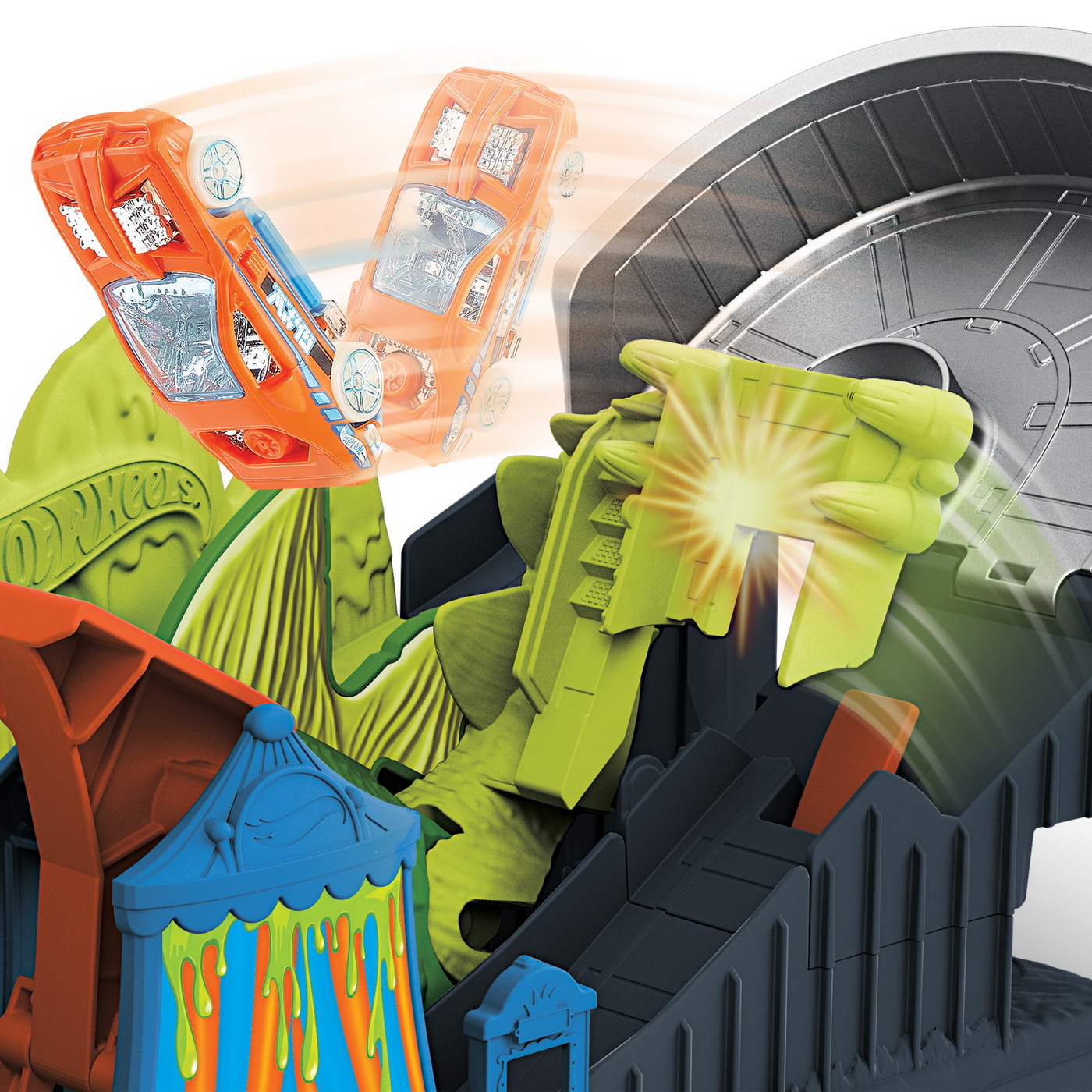 Orasul Hot Wheels este impanzit de creaturi ciudate! Foloseste masinuta Hot Wheels pentru a face cascadorii si a trece de acesti monstrii pentru a salva orasul. Acest set de joaca interesant ofera micilor copii ocazia de a fi super eroi si sa isi foloseasca masinutele lor Hot Wheels pentru a lupta si pentru a salva ziua.