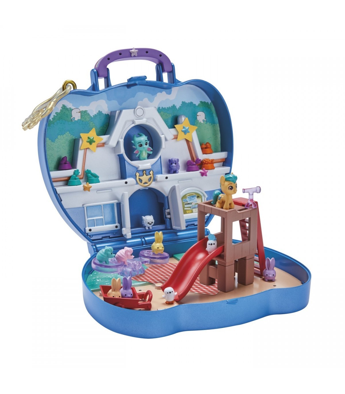 Experimenteaza cea mai buna latura a prieteniei cu colectia de jucarii My Little Pony! Construieste lumea magica Equestria cu My Little Pony Mini Friends! Seturile My Little Pony Mini World Magic prezinta scene minuscule si personaje adorabile inspirate din serialul TV animat My Little Pony: Tell Your Tale. Fiecare set Compact Creation include 2 figurine adorabile de 2, 5 cm inaltime si peste 40 de accesorii. Combina accesorii si piese pentru setul de joaca pentru a construi scene si a crea o lume in miniatura My Little Pony. Unele accesorii isi schimba culoarea cand se foloseste apa! Toate seturile vin intr-o carcasa compacta, astfel incat copiii sa le poata lua cu ei oriunde ar merge.