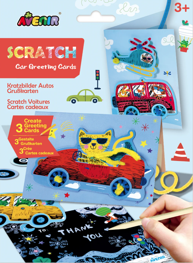 Distracția scratch art este acum disponibilă sub formă de kituri de felicitări pentru copii!