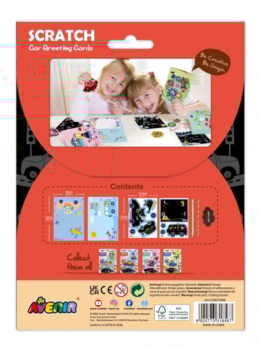 Bucurați-vă de acest superb pachet ! Fiecare pachet include 2 felicitări și o carte poștală pe care să o decorezi cu masinute!