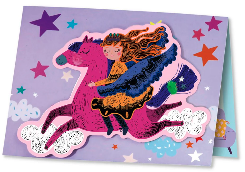 Tot ce este necesar este inclus în pachet pentru a realiza felicitări minunate care exprimă imaginația și creativitatea copilului, spre încântarea celor care le primesc.