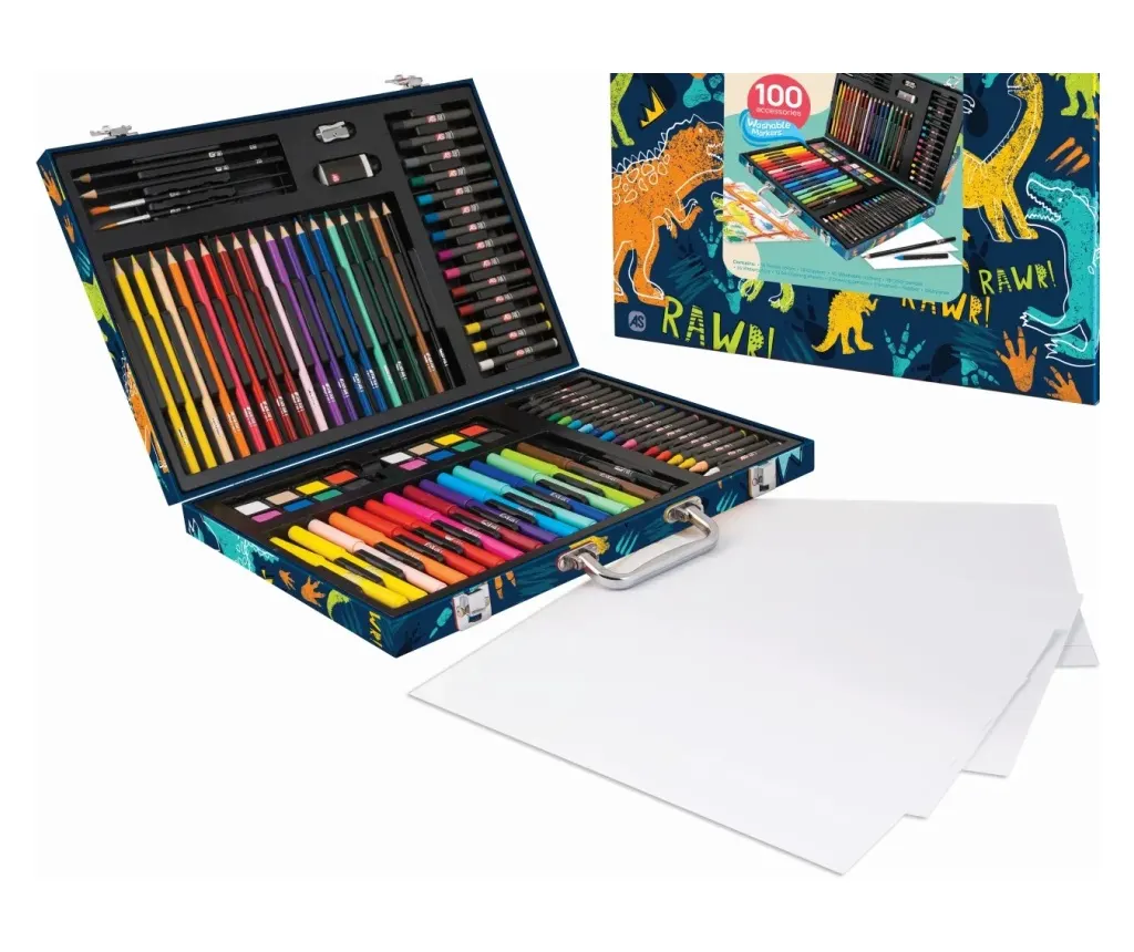 Trusa de desen de lux din lemn este un studio de pictura portabil cu 100 de accesorii pentru a picta ore intregi.