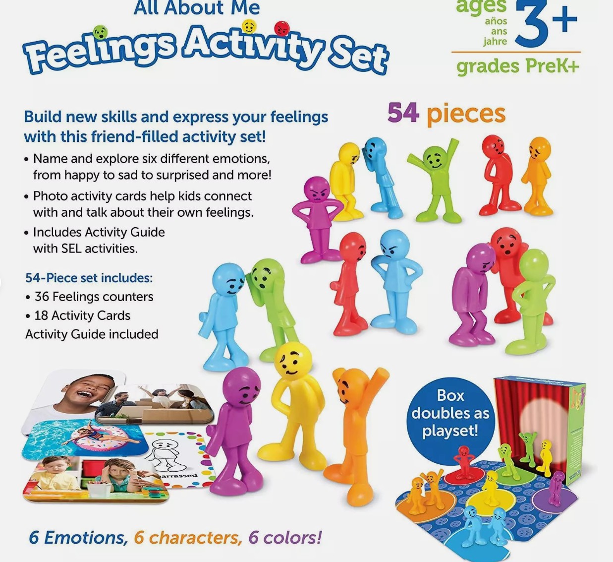 Setul de activități „Totul despre emoțiile mele” oferă copiilor o modalitate practică de a explora emoțiile și învățarea social-emoțională (SEL). Cu 36 de figurine colorate, reprezentând 6 emoții în forme și culori unice, copiii învață să recunoască și să discute despre sentimente. Acest set versatil include și un ghid de activități SEL, precum și o funcție integrată de sortare, fiind ideal pentru activități de numărare, sortare și potrivire. Fie acasă, fie în clasă, acest set îi ajută pe copii să își dezvolte înțelegerea emoțională, abilitățile de lucru în echipă și multe altele, pentru o viață mai fericită și mai sănătoasă.