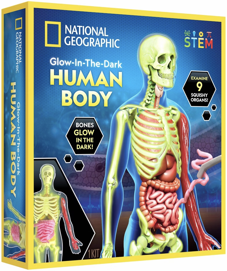 Corpul Uman Fosforescent de la National Geographic este o modalitate captivantă și practică de a învăța despre anatomia umană! Acest model fascinant al corpului uman include 9 organe moi detașabile și 18 oase care strălucesc în întuneric. Penseta inclusă face ca îndepărtarea fiecărei piese să fie distractivă, iar un tabel organizator util ajută la identificarea corectă a fiecărui os și organ. Ghidul educațional este plin de informații despre principalele organe și sisteme ale corpului. După ce corpul este reasamblat, poate fi expus cu mândrie pe suportul inclus, iar partea cea mai interesantă este că oasele strălucesc în întuneric! Acest kit este perfect pentru orice copil curios! Obțineți astăzi Corpul Uman Fosforescent!