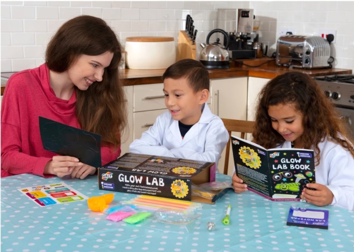 Set pentru 11 experimente distractive: jucați-vă cu bețișoare fluorescente, creați o minge fluorescentă și modelați o insectă gelatinoasă care strălucește în întuneric. Confecționați-vă o pereche de ochelari pentru a descoperi mesajele scrise cu cerneală invizibilă.