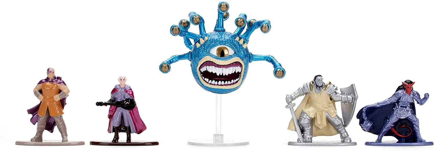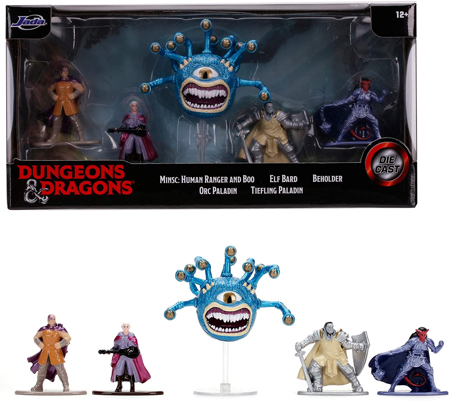 Set 5 figurine din metal Dungeons & Dragons (Minsc Human Ranger, Elf Bard, Orc Paladin, Tiefling Paladin, Beholder), inaltime 4 cm. Lansati-va intr-o aventura epica pentru a descoperi ce comori va stau in fata! Cu caracterul lor autentic, aceste figuri turnate din zinc sunt un punct culminant absolut in fiecare colectie! Adunati-i pe toti pentru a va aduna grupul si intrati in lumea fantastica a D&D!