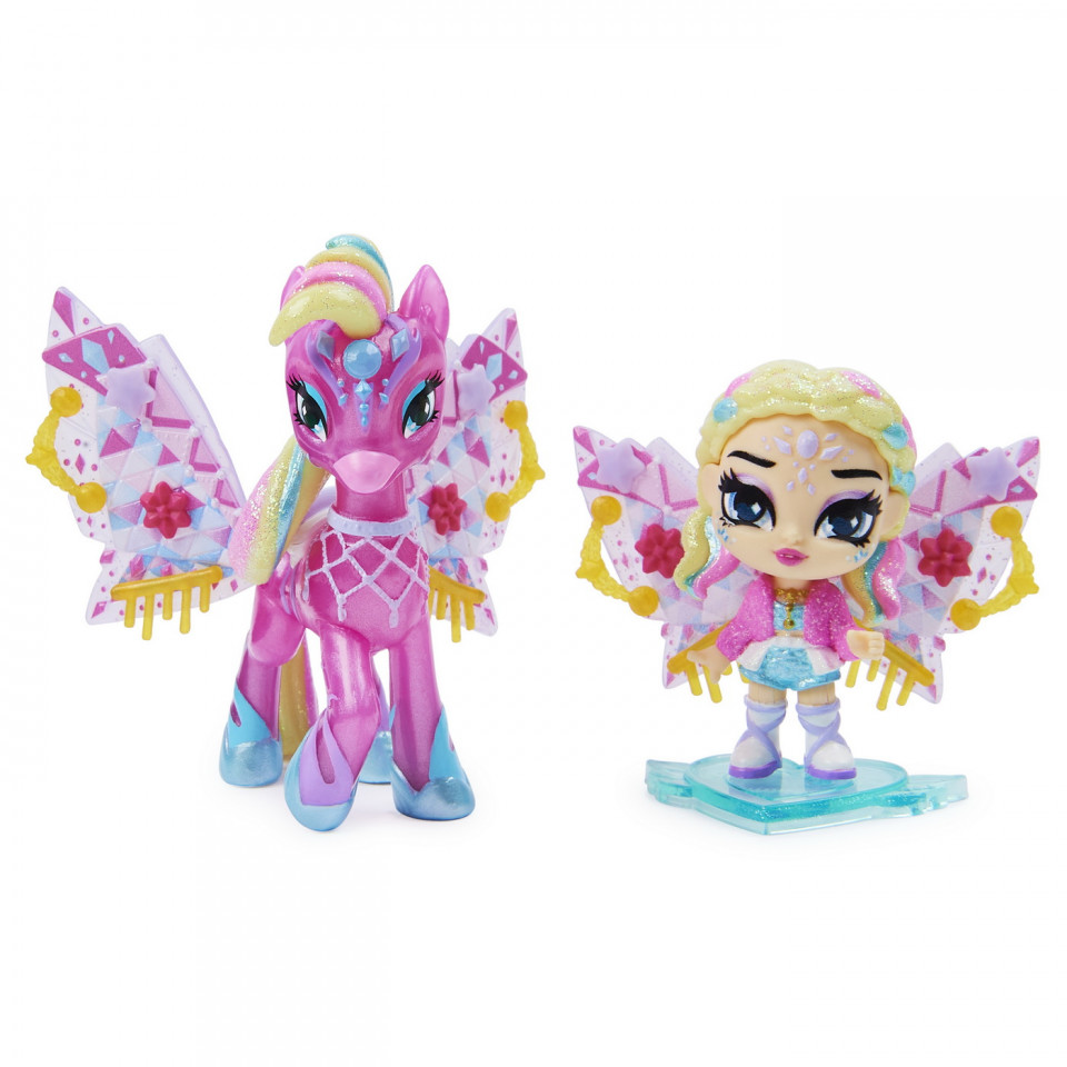 Descopera figurinele Hatchimal Pixie Riders, cu aripi si mai mari, mai curajoase si mai multe! O furtuna de sclipici s-a rotit prin Hatchtopia iar acum figurinele Pixie si Hatchimal au Wilder Wings! Figurinele Hatchimal Pixie Riders au toate aripi mari si stralucitoare, cu detalii colorate uluitoare si acum le poti decora cu accesoriile nou-noute pentru aripi! Aceste figurine Pixie au cap si picioare mobile si sunt livrate cu un inaripat asortat pe care se pot deplasa cu adevarat! Cand aceste figurine Hatchimal curajoase merg impreuna, au in total 9 cm. Figurinele Wilder Wings Pixi Riders iti ofera o experienta unica la scoaterea din cutie. Mai intai, scoateti din ou inima pentru a dezvalui figurina Pixie perfecta. Apoi, scoateti cutia din masnon si deschideti lumea modei din interior! Descopera inaripatul Hatchimal maiestuos, apoi desfa compartimentul cu oglinda pentru a gasi 16 accesorii cu aripi, ambele seturi de aripi, un suport de etalare si un cod Hatchtopia Life exclusiv pe care sa il folosesti in aplicatia gratuita (compatibila cu dispozitivele iOS si Android). Prinde usor aripile, pune-le pe figurinele Pixie si Glider si apoi personalizeaza-le cum vrei aspectul! În plus, poti combina si asorta accesoriile pe toate figurinele Wilder Wings Pixie Rider! Dupa ce scoti din cutie si accesorizezi figurinele tale uimitoare Pixie si Glider, cutia devine un set de joaca, unic pentru duetul tau Pixie Rider! De asemenea, poti intoarce inima si o poti folosi pentru a-ti afisa noii prieteni in fata scenei de moda. Adauga toate figurinele Wilder Wings Pixi Rider la colectie si porneste intr-o aventura salbatica!