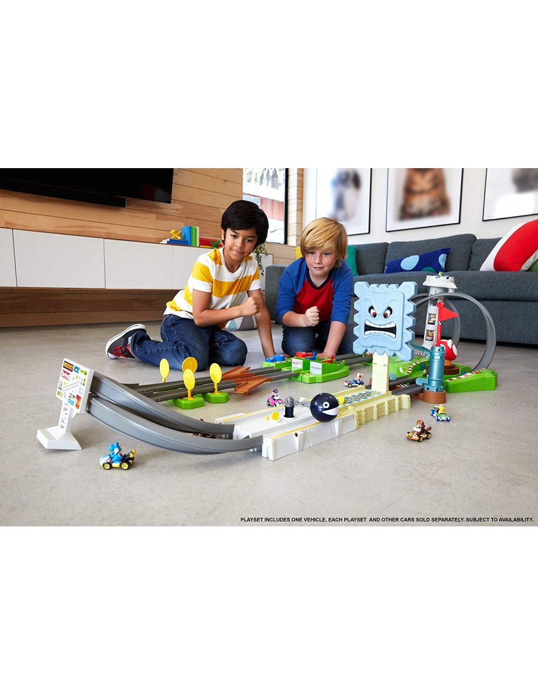 Hot Wheels da viata actiunii din celebrul joc Mario Kart cu piste incredibile, inspirate de traseele epice ale jocului video iubit de generatii! Concureaza cu Mario Kart impotriva prietenilor, depaseste obstacolele si tine piept provocarilor de pe pista Mario Kart de la Hot Wheels! Încarcati karturile in lansatoare si eliberati pentru a lansa masinile in jurul pistei! Setul include multe accesorii pentru un joc competitiv si plin de actiune precum: steaguri de numarare a turelor, lansator, obstacole si multe altele. Cresteti nivelul de dificultate al provocarilor prin reconfigurarea pistei si prin conectarea setului de circuit Mario Kart la alte seturi de piste. Setul Bila Distrugatoare contine kartul Donkey Kong.
