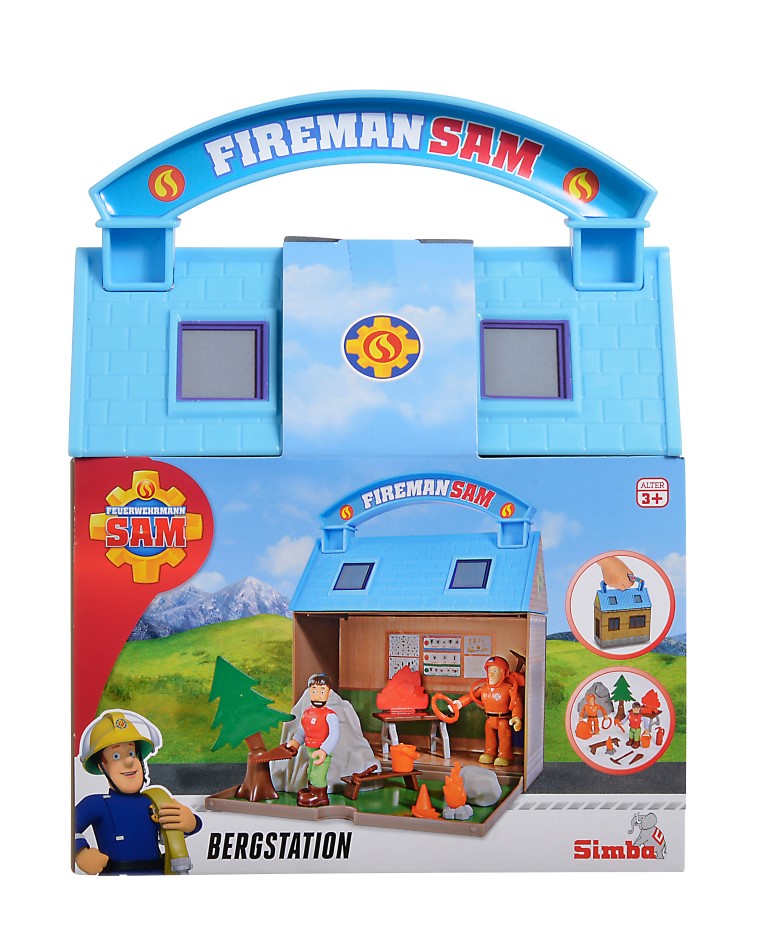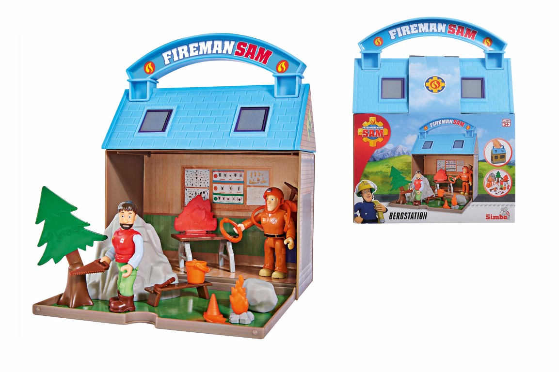 Centru de activitati montan Fireman Sam, se poate deschide, include figurina, copaci si alte accesorii