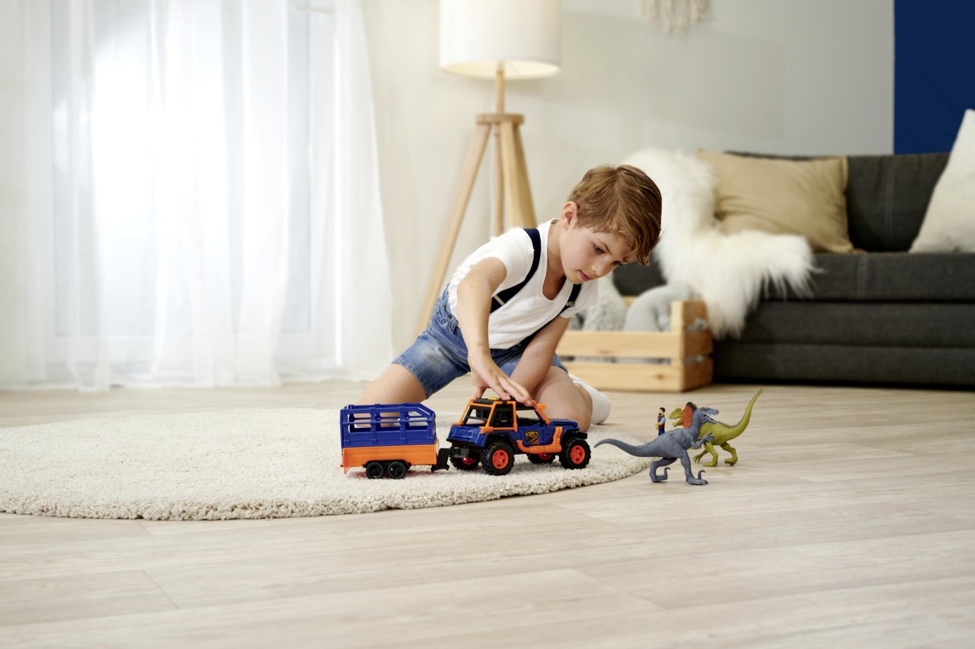 Cu vehiculul sau de teren Jeepster Commander(licenta Jeep originala in Scara 1/24), echipat cu remorca si cusca, rangerul pleaca in cautarea dinzoaurilor. Vehiculul este facut pentru salbaticie: cauciucuri cu suspensie, usi care se deschid, piese de reglare si efecte de sunet/lumina (baterii incluse).