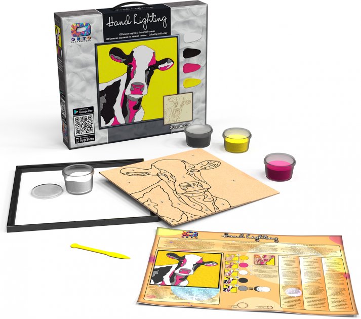 Set de modelaj pentru realizarea unui tablou de 30 x 30 cm ilustrat cu o văcuță.