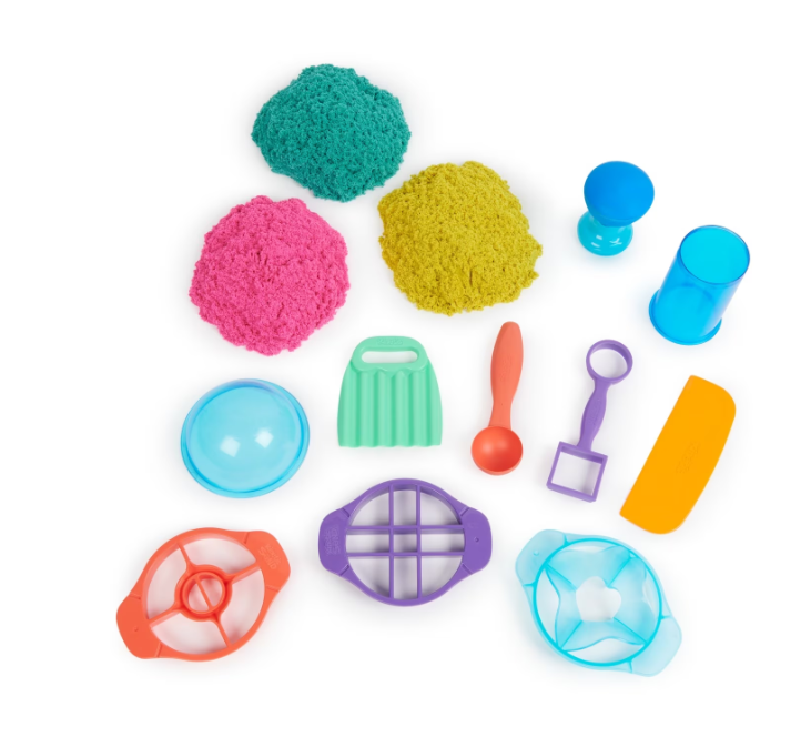 Nisipul Kinetic se lipeste in mod magic, permitandu-le copiilor sa modeleze si sa dea forma creatiilor proprii fara a face mizerie. In plus, nu se usuca niciodata si poate fi folosit la nesfarsit pentru jocuri senzoriale! Descopera lumea magica a artei in nisip si creeaza efecte uimitoare cu ajutorul cu nisipului roz, galben si turcoaz, a celor 10 forme pentru nisip, a uneltelor si a instrumentului exclusiv pentru strivit care te ajuta sa te bucuri la nesfarsit de noi creatii din nisip!